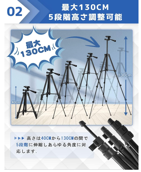 スマホ 三脚 iphone 三脚 Bluetoothリモコン付き三脚 3WAY雲台 4段階伸縮 最大長さ130cm 360°回転可能 スマートフォン 三脚 軽量 ミニ三脚 収納袋付き 持ち運び便利 iPhone/Android/カメラなど対応 自撮りや集合写真、生ライブ配信などに適用 日本語取扱書付き LF0242